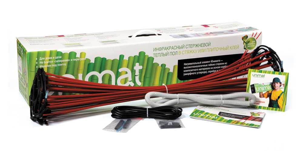 Стержневые теплые полы представляют собой маты, на которых на расстоянии 9-10 см друг от друга закреплены карбоновые стержни.