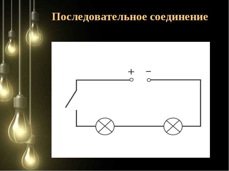 Способ последовательного соединения носит бытовое название «гирляндный», поэтому обрыв даже на одном из участков сопротивления способствует выключению или «разрыву» всей электрической цепи.