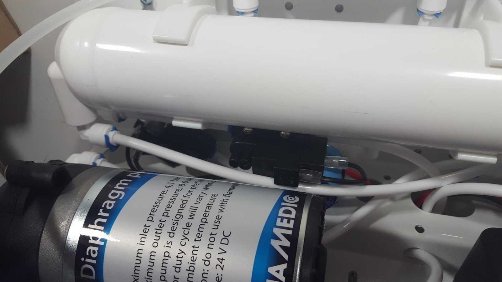 Если мембрана слишком быстро загрязняется, в картриджах накапливается слизь, то это говорит о низком давлении в водопроводной сети. Для решения проблемы обычно применяют помпы. В некоторых случаях промывка угольного фильтра может стать причиной загрязнения третьего фильтра сразу после монтажа. Чтобы избежать этого, установку лучше проводить после промывки угольного картриджа, но под струей проточной воды это делать нельзя, так как можно повредить устройство.