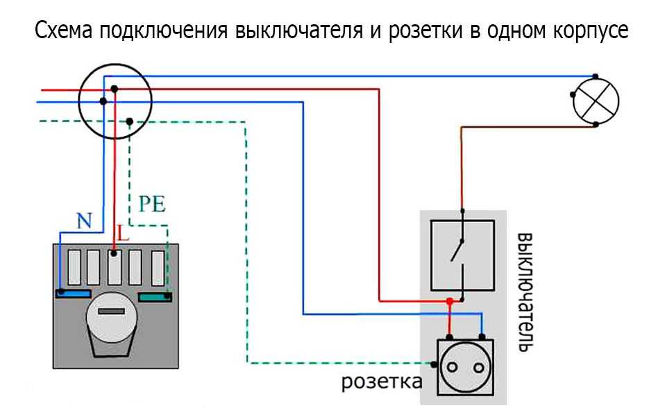 Самой простой схемой является подключение одноклавишного выключателя с розеткой в одном блоке.