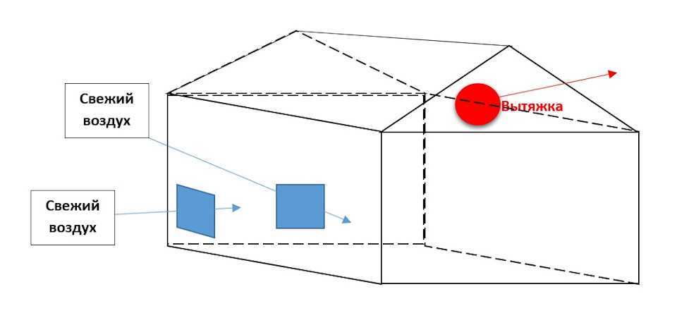 Происходит произвольное обновление воздушных масс. Это идеальный пример для нормального климата. В резко континентальных условиях требуется тщательно подходить к вопросу установки вентиляции.