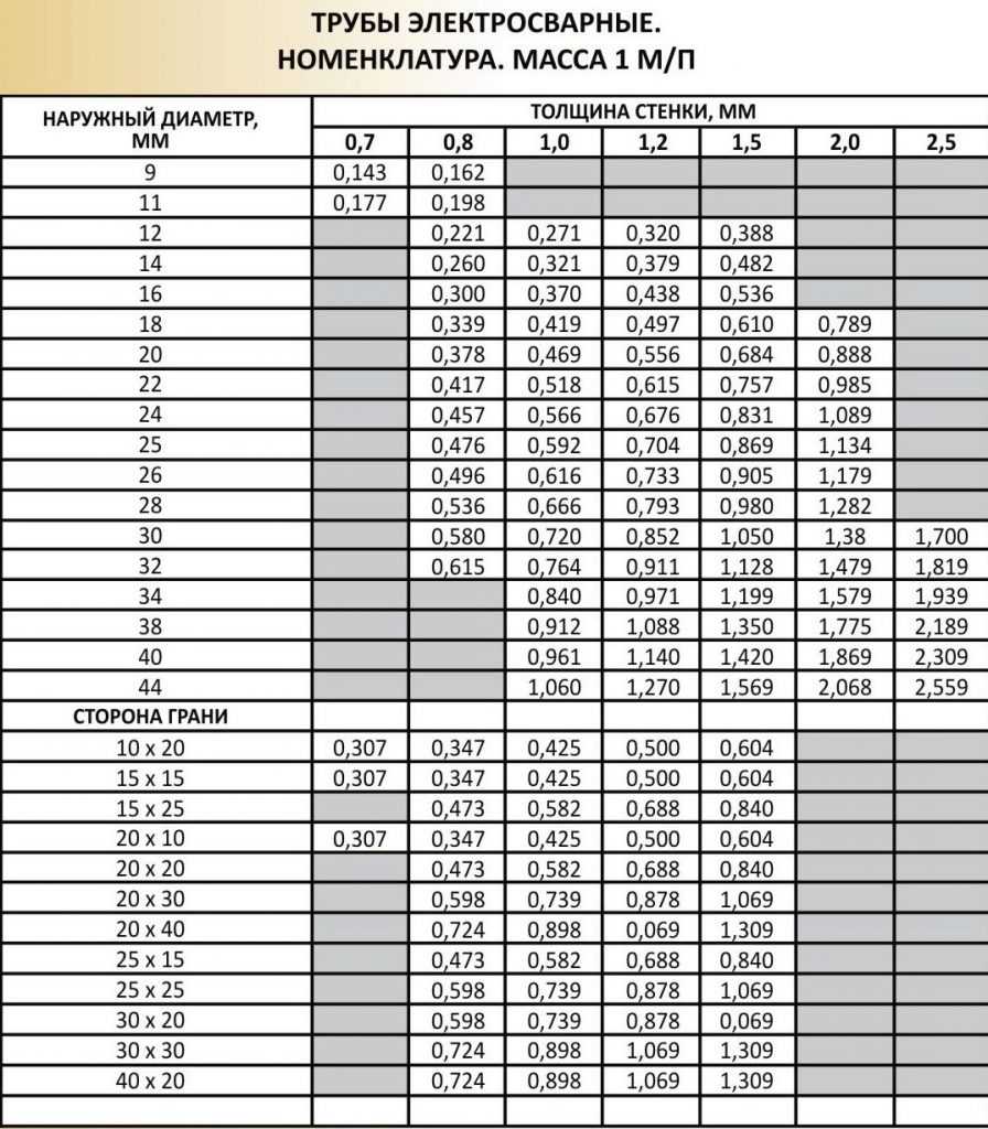 Параметры металлических труб овальной формы определят ГОСТ 8642-68. Размерный ряд внешнего сечения изделий начинается от 16х10 мм и доходит до 90х32 мм. Толщина стенок может быть 0,5-2,5 мм.