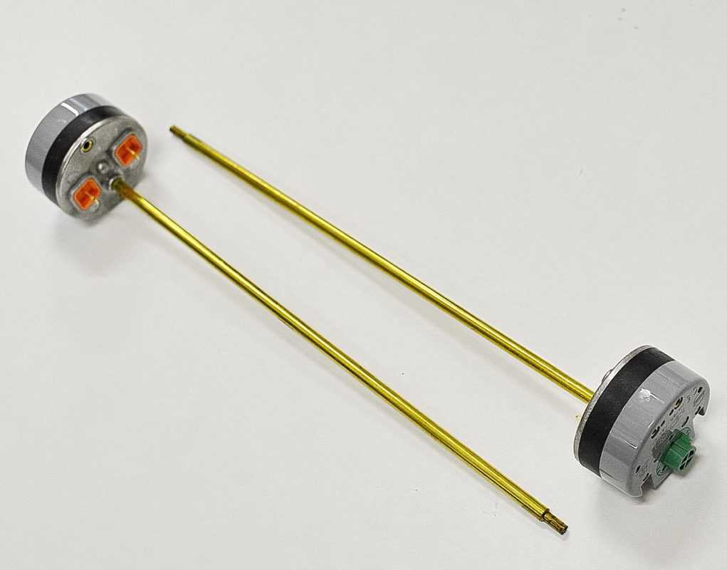Свое название получил из-за внешнего вида, так как выглядит как стержень. Считается надежным, долговечным. Работает по принципу разного линейного расширения наружной стенки и внутреннего штыря. Его трубка производится из латуни. В процессе нагревания она увеличивается в размерах, что приводит к отключению ТЭНа из-за размыкания клемм. Данный термостат простой в исполнении, имеет невысокую стоимость и отличается стойкостью к различным негативным факторам. Его минус – не точность в работе.