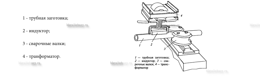 Получение трубчатой заготовки производится за счет поэтапного поджатия концов полосы вертикальными и горизонтальными роликами. Этот этап одинаков для всех процессов изготовления водогазопроводных труб. Основные отличия в технологии связаны с процессом соединения кромок полосы. Одним из наиболее эффективных способов формирования сварного шва является индукционная сварка.