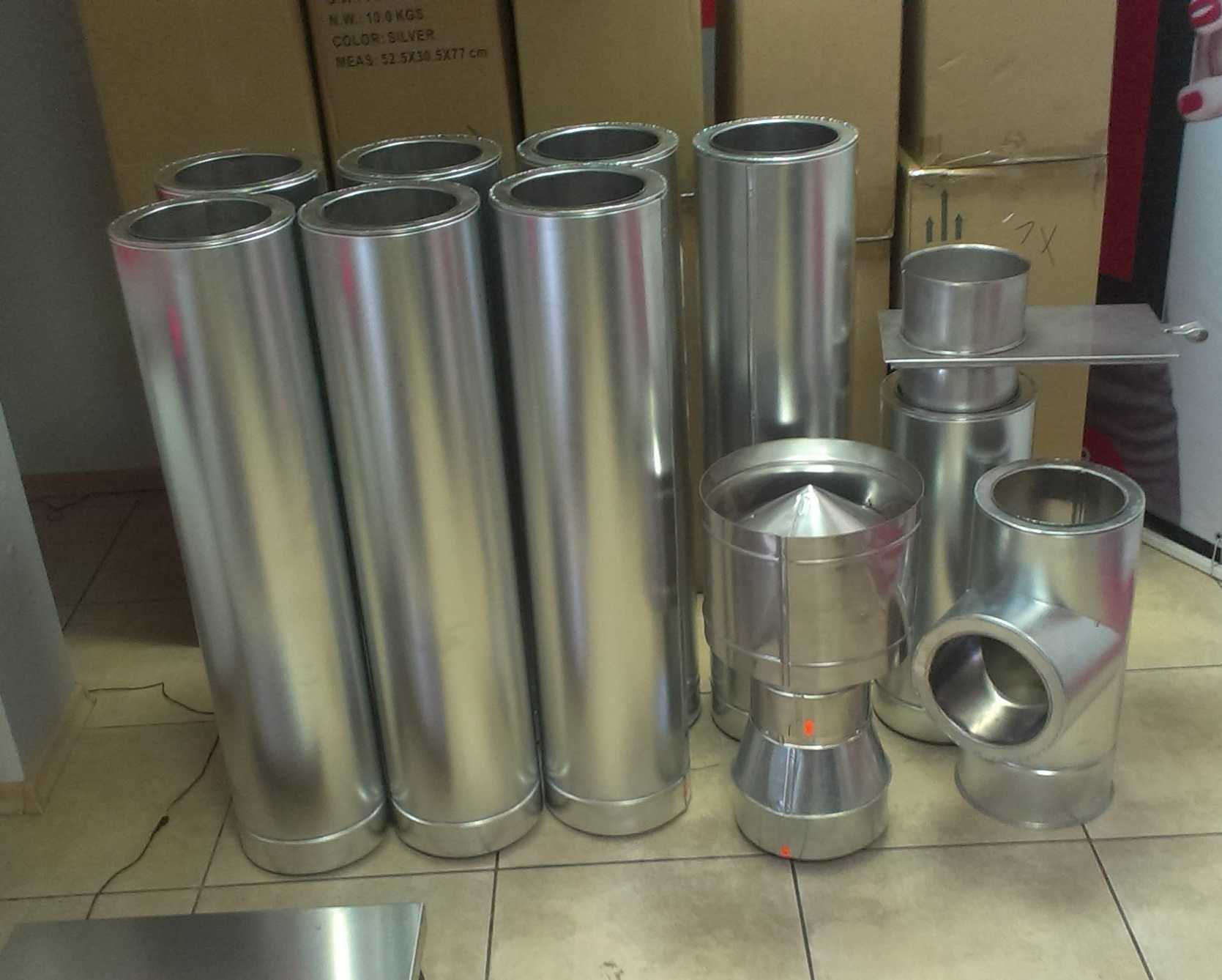 - Дымоходная труба, зонт-К и шибер из нержавеющей стали.