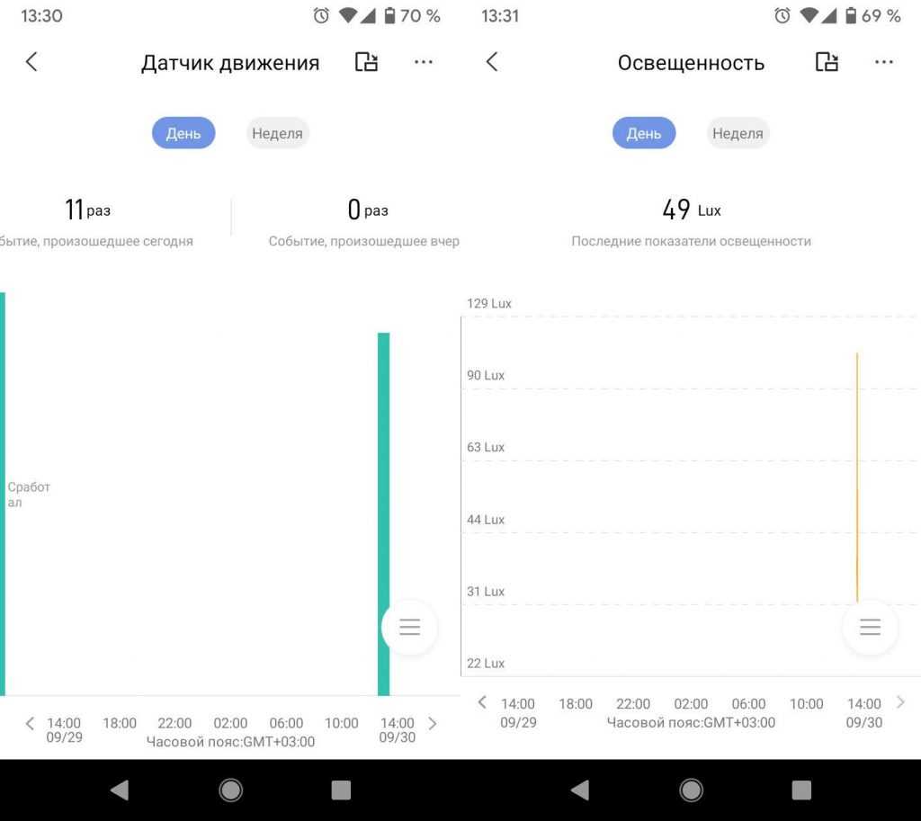 - Учитывая возможность замера освещенности можно включать подсветку ночью. Покупать отдельно лампы для этого не требуется, ведь можно использовать подсветку шлюза (если он у вас не третьей версии конечно).