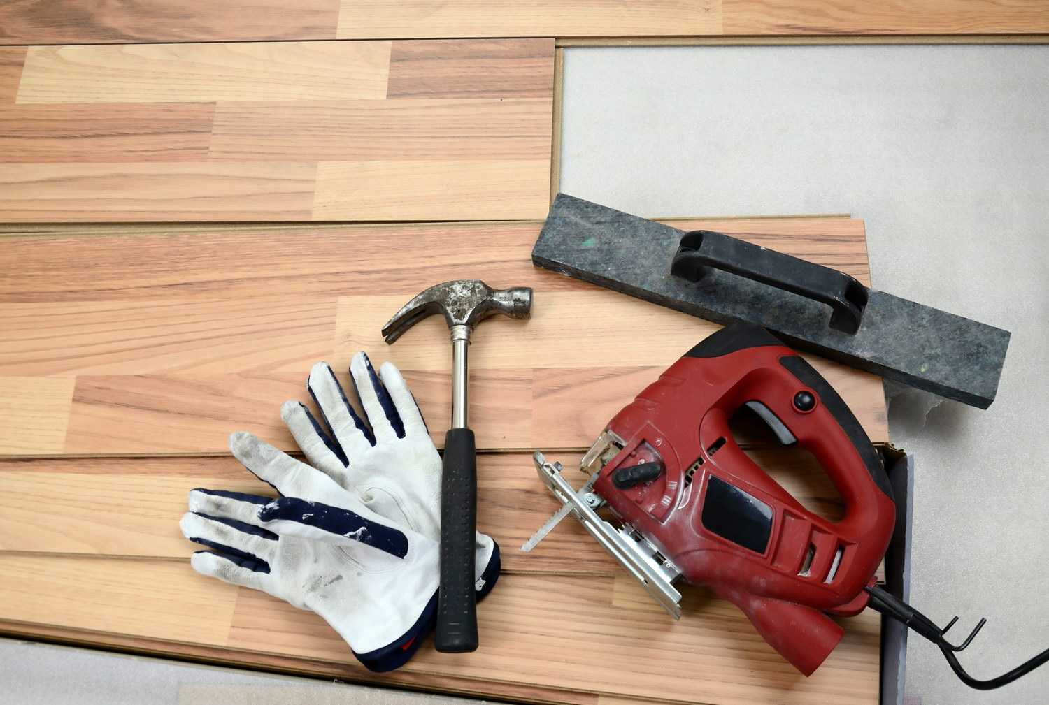 Под рукой стоит иметь шлифовальную машинку. Помимо инструментов понадобятся и материалы вроде клея и гвоздей для паркета, фанеры, устойчивой к влажности и саморезов.