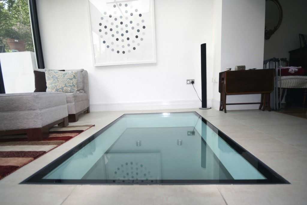 Если вы хотите придать вашему интерьеру оригинальности, то стоит обратить внимание на стеклянные полы. Даже замена небольшой части обычного пола на стекло способна кардинально изменить его внешний облик и облегчить атмосферу в помещении, особенно если в нем много габаритной мебели. Вместе с этим и увеличивается объем комнаты