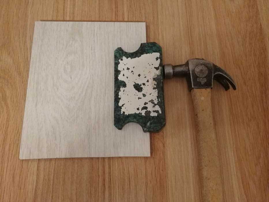 Технология укладки ламината такова, что каждую доску нужно слегка подбивать молотком. Однако при прямом ударе можно случайно повредить материал. Чтобы на панелях не образовывалось сколов, вам потребуется пластмассовый подбивочный брусок. Можно купить и деревянный, но брусок из пластмассы лучше смягчает удар. Вес бруска должен быть примерно 1,5 кг, а вот его габариты более внушительными. Следите за тем, чтобы ребро, прикладываемое к доске при подбивке, было ровным. Если поверхность бруска слегка повредилась, то его следует заменить.