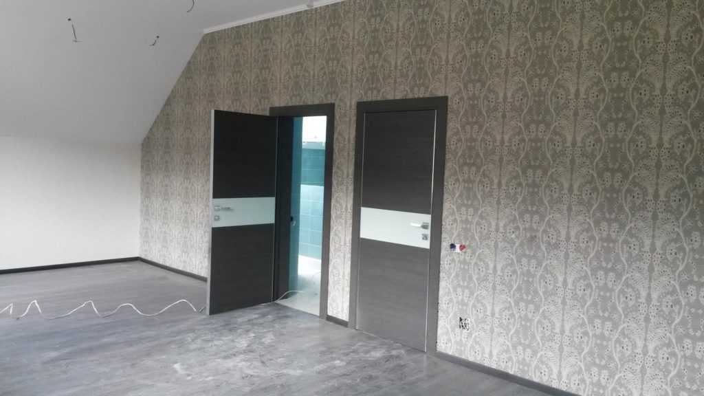 Перед укладкой покрытия все грязные черновые работы нужно завершить, стены и полы должны быть полностью готовы для чистовой отделки. На выровненный с помощью стяжки пол нужно положить специальную подложку, а затем уже ламинат. После его укладки уровень пола станет выше на несколько сантиметров, поэтому дверные проемы надо измерить в высоту заранее. Если проемы окажутся ниже 2 м (высота стандартного дверного полотна), то нужно либо увеличить их раньше, чем приступить к чистовой отделке, либо выбрать двери, изготовленные на заказ.