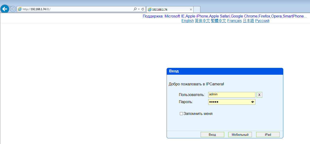Открываем браузер. Теперь если ввести в адресную строку указанный адрес, там появится изображение с камеры. Потребуется также пароль и логин.