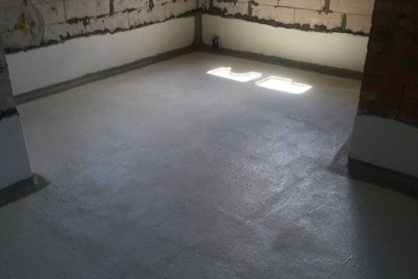 На ровную стяжку просто наносится гидроизоляция согласно рекомендациям производителя. Правда стыки со стеной нуждаются в дополнительной защите, а также места ввода коммуникаций