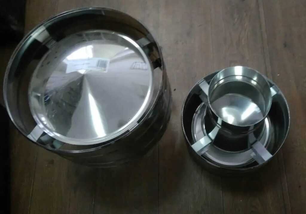 - Внутренняя часть искроуловителя может изготавливаться из куска трубы – правильно подобрав диаметр, можно будет просто надеть конструкцию на дымоход. Если нет подходящей трубы, нужную конструкцию придется делать самостоятельно из листовой нержавейки.