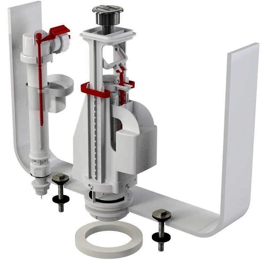 Существует множество вариантов подобных механизмов, но собирают их по одному типу. Как правило, они состоят из уплотнительной прокладки, гайки крепления клапанного механизма и самой двухкнопочной головки.
