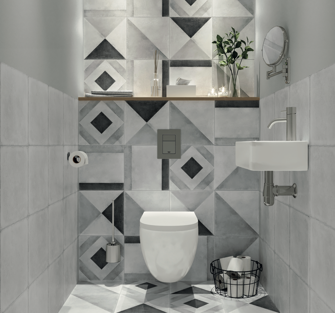 - Раскладку плитки: изображение покрытия стен и пола выбранной плиткой, мозаикой или их сочетанием. Раскладка позволит определить точное количество фона и декора, поможет выбрать оптимальный формат плитки и рисунок укладки.