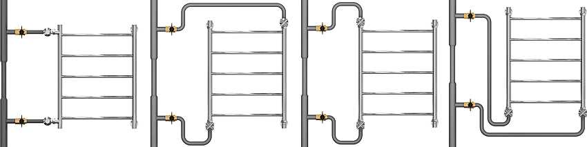 Схема подключения полотенцесушителя из нержавеющей стали.