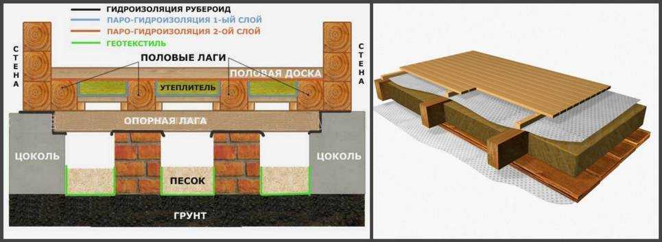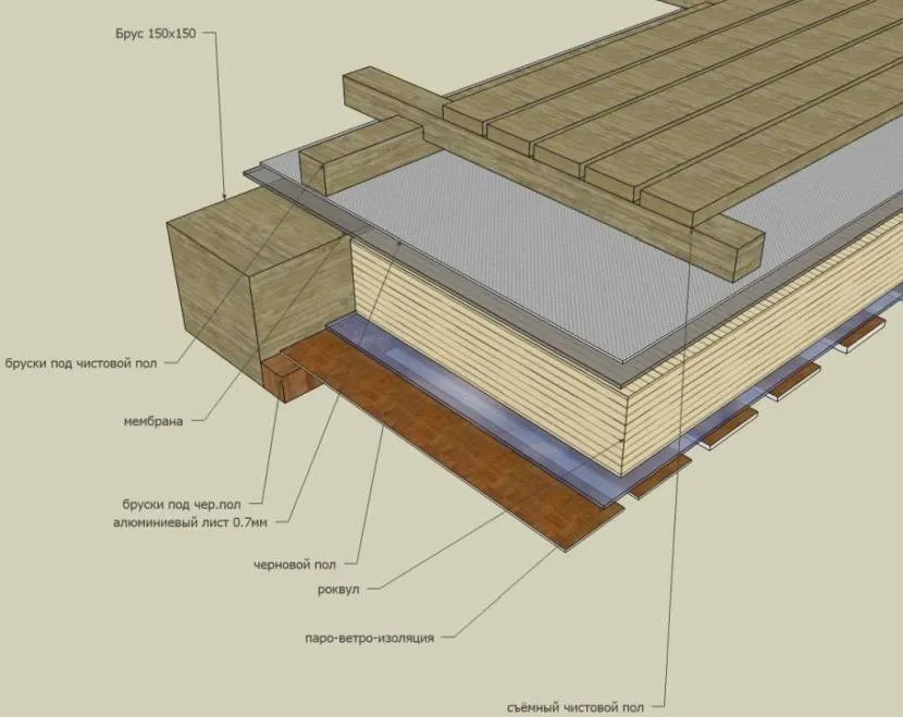 Технология устройства перекрытия пола дома по деревянным балкам, лагам.
