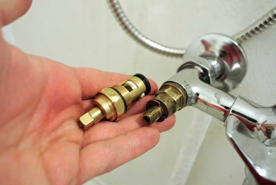 После того, как смеситель снят, можно приступить к замене кранбукса – переключающей арматуры, которая используется для подачи воды на шланг душа. Арматура обычно выполнена из латуни и отличается хрупкостью.