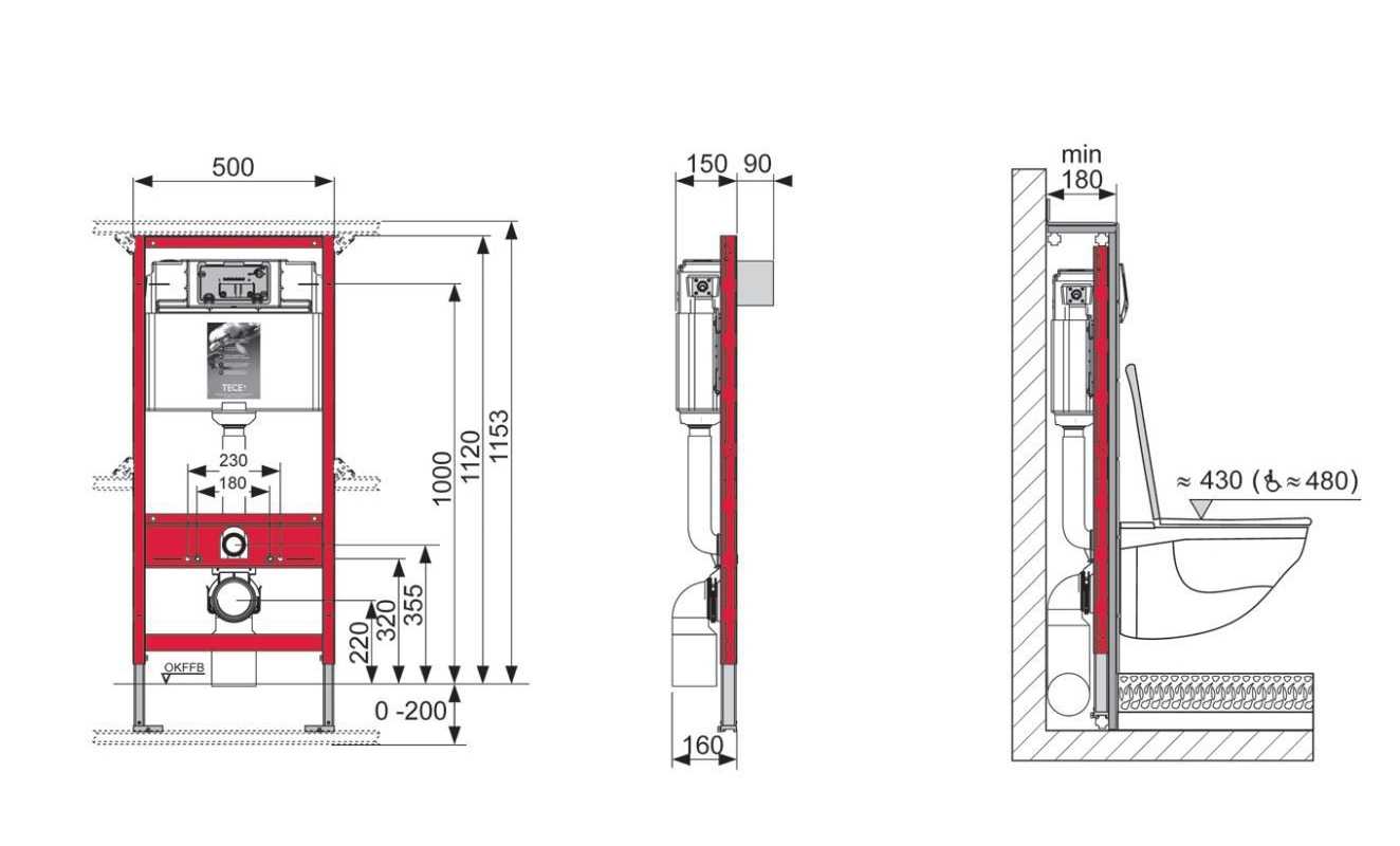 Рамная конструкция отличается от блочной, прежде всего, более высокой ценой. Взамен производитель предлагает универсальное решение для системы инсталляции: его можно применить где угодно, даже с относительно слабыми деревянными каркасными перегородками. Существует разновидность для упора в пол (на специальных ножках) и непосредственно навешиваемая на стену.
